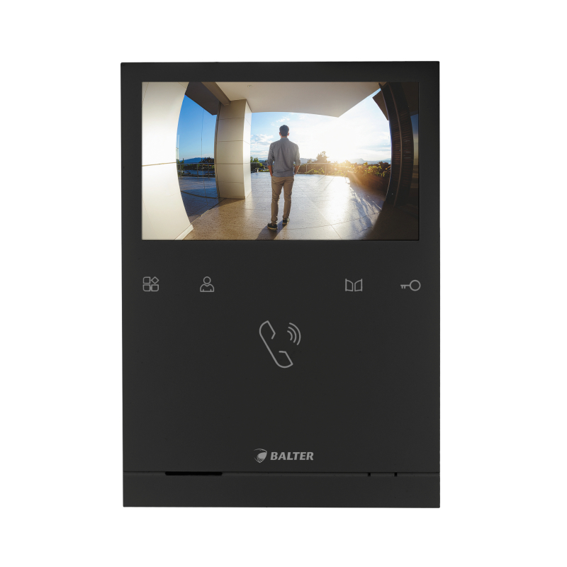 BALTER EVO 4.3" Videostation, LCD-Farb-Bildschirm, Sensortasten, 2-Draht BUS, Plexiglas, Interkom, Schwarz